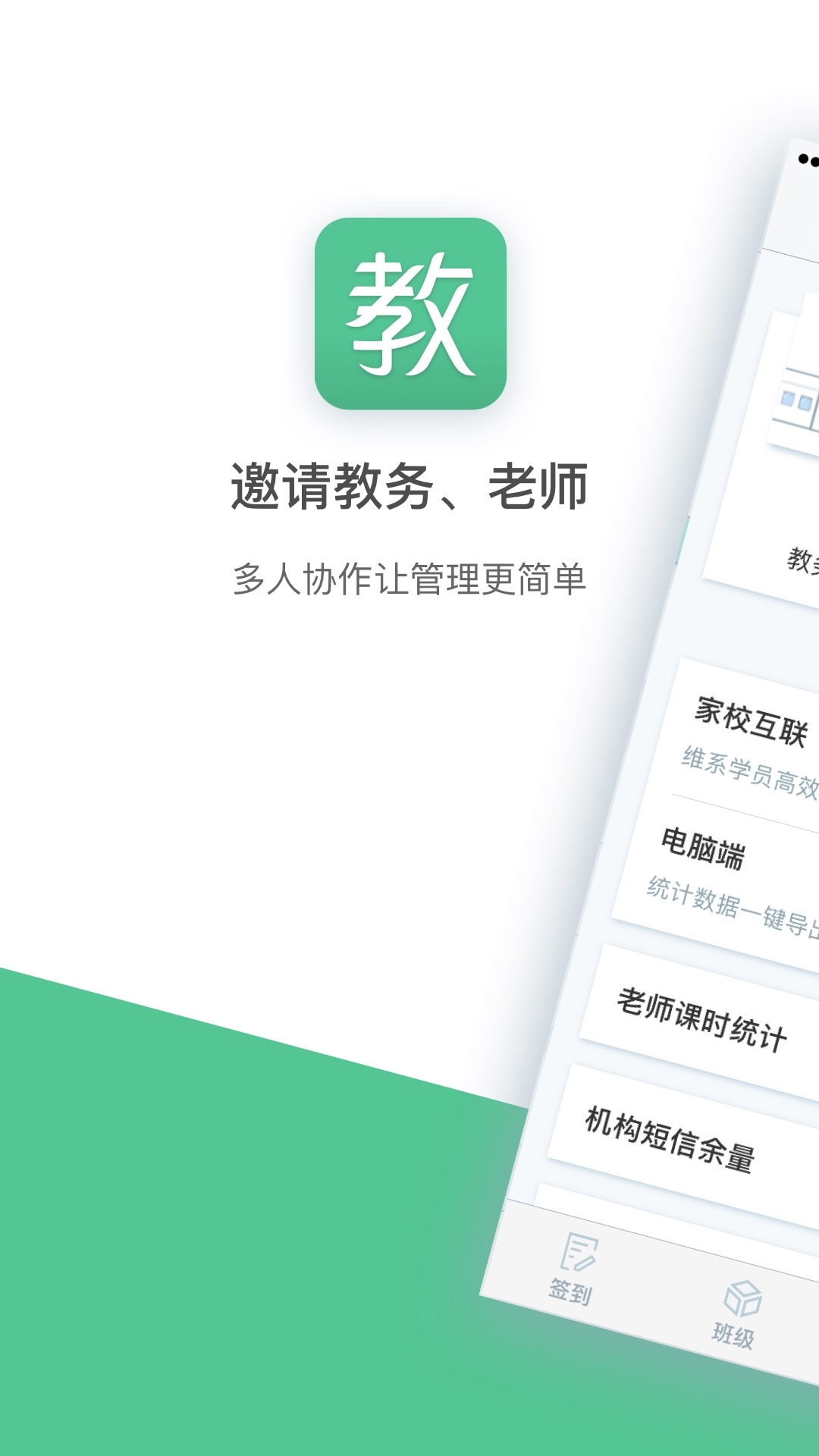 3、协作:机构所有者带领教务、老师,共同管理机构内班级与学员。
