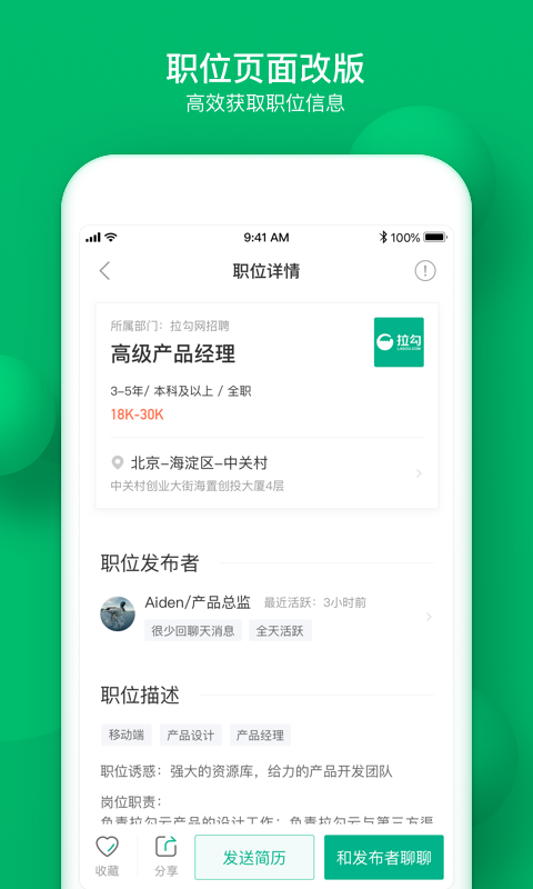 拉勾,互联网人才求职找工作必备APP,企业CEO/业务部门Leader/HR的手机招聘利器。