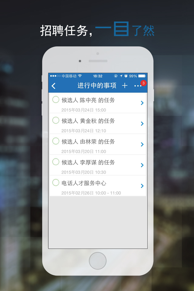 1、移动招聘:随时随地筛选、评估、跟踪人才,办公室之外也可以完成招聘工作。