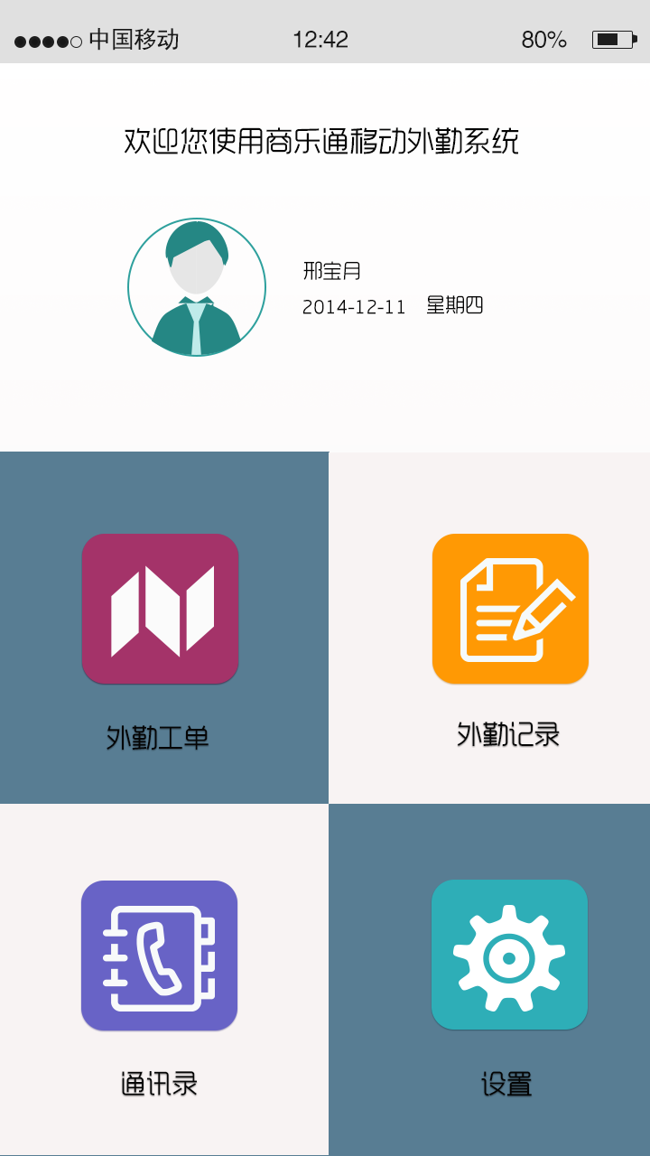 移动外勤是睿邦国宇商乐通系列产品之一,专为解决中小企业外勤人员外勤管理问题量身定制,相对于市场上同类其他产品,商乐通移动外勤没有过多的纷繁芜杂的花哨功能,更能轻松解决各种外勤管理中遇到的问题,基于GPS定位技术,四个节点签到(外出、到达目的地、离开目的地、回到公司),实时管理企业外勤,特殊情况,可在外勤工单上添加备注说明,公司管理人员可将外勤记录导出excel表格,商乐通移动外勤,让企业的外勤管理更高效。