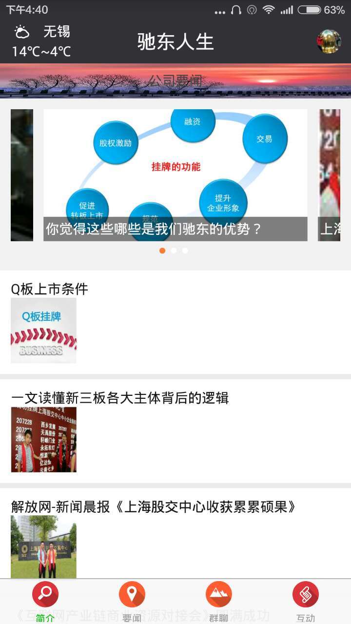 驰东group安卓版APP包含有驰东集团最新资讯,最新公告的消息,有驰东集团员工社区聊天,交流,对公司的意见改善提议区。第一版本,主要集合驰东集团简介,要闻,群聊和互动。主要让客户了解驰东集团最新资讯和员工的归属感。