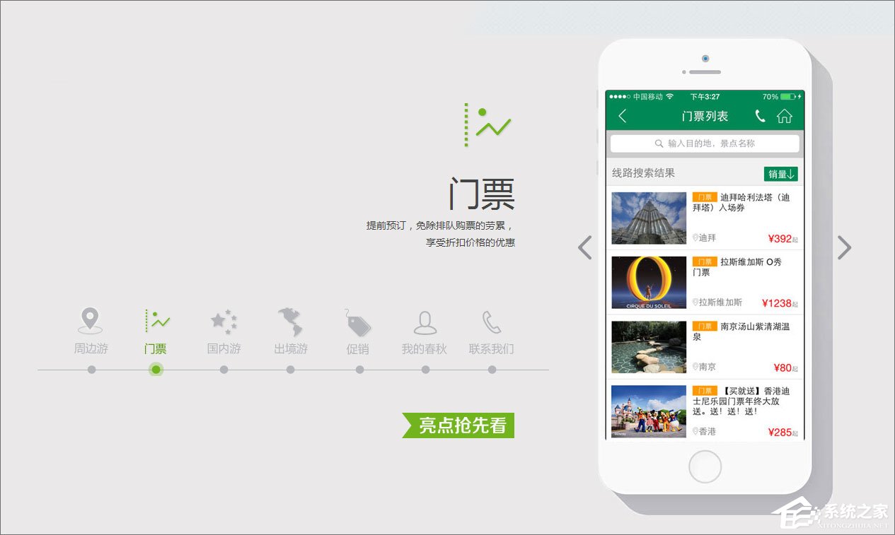 通过移动客户端春秋旅游提供吃住行游购娱一站式解决方案 , 随时随地为旅行者提供国内外旅游、门票、机票、酒店、度假、接送机、团购等旅行信息的全面覆盖和便捷预订服务。