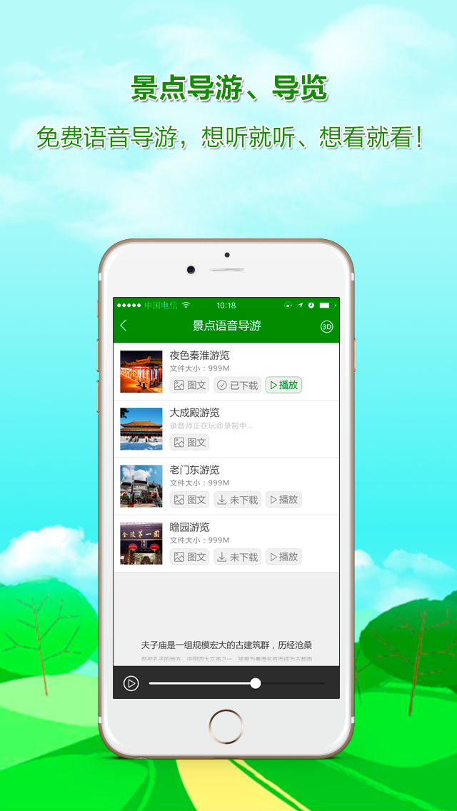 走一走旅游移动APP,绘制多个目的地的着名景点3D导览,例如南京的夫子庙3D导览图、中山陵3D导览图、明孝陵3D导览等让你从另外一个角度看景点美景、美色,很美,很炫,很Q版。