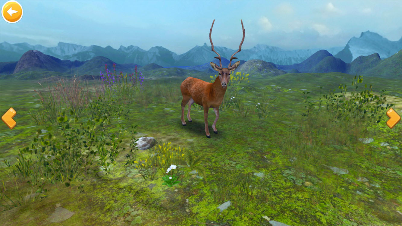 2.预览模式,点击主菜单的“Preview”按钮,可脱离实体图片使用,左右按钮切换动物,点击动物实现互动,多角度、全方位的观察动物。