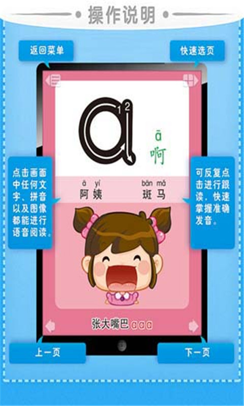 宝宝学拼音app是孩子们学习拼音的好帮手!拼音是学习汉字发音的基础, 是一门必修课。本套宝宝学拼音融合了拼音笔顺,词组发音,卡通插图以及朗朗上口的顺口溜, 以发散形记忆方式, 让宝宝更快的掌握标准的拼音发音。