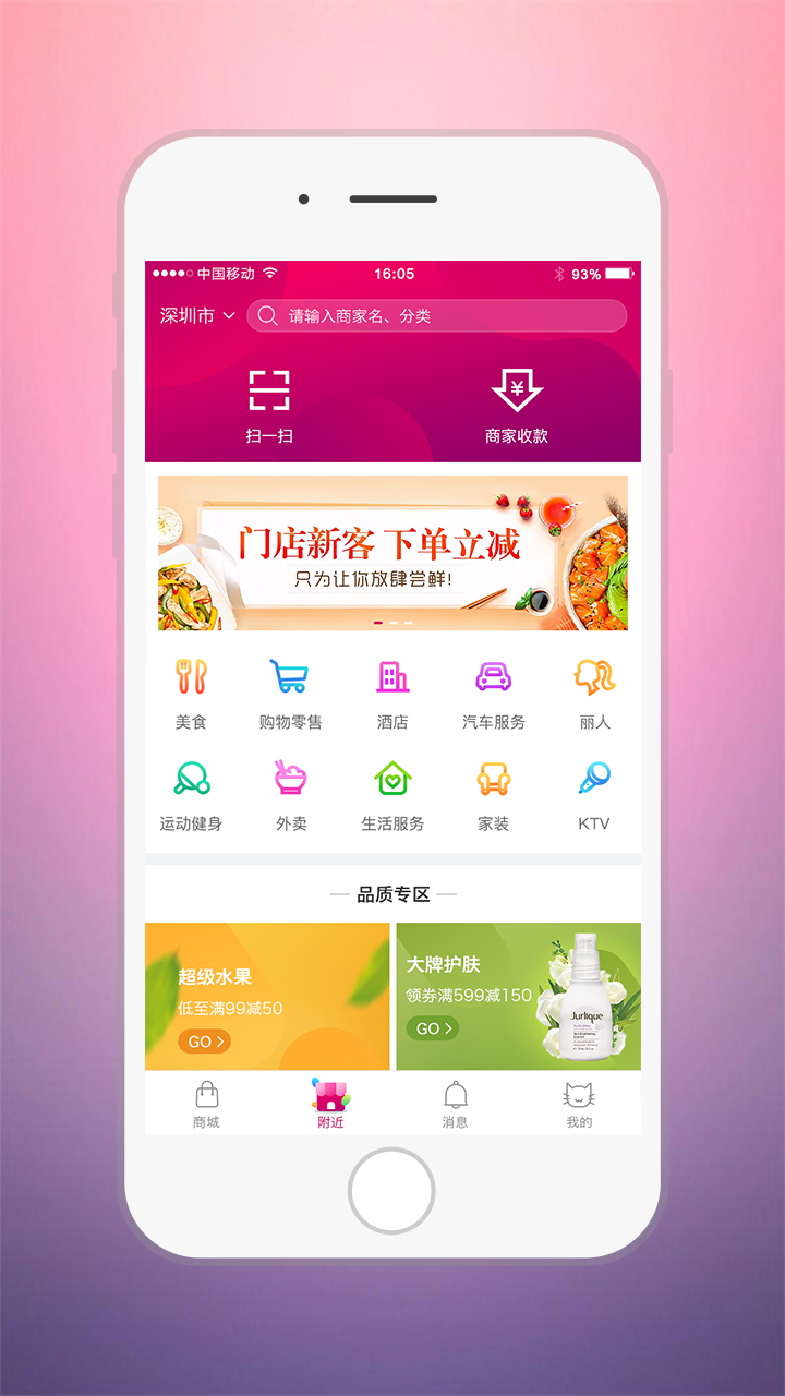 上万家实体店入驻商城,商品种类一应俱全,附近美食随时送到家,为用户提供方便快捷的品味生活。