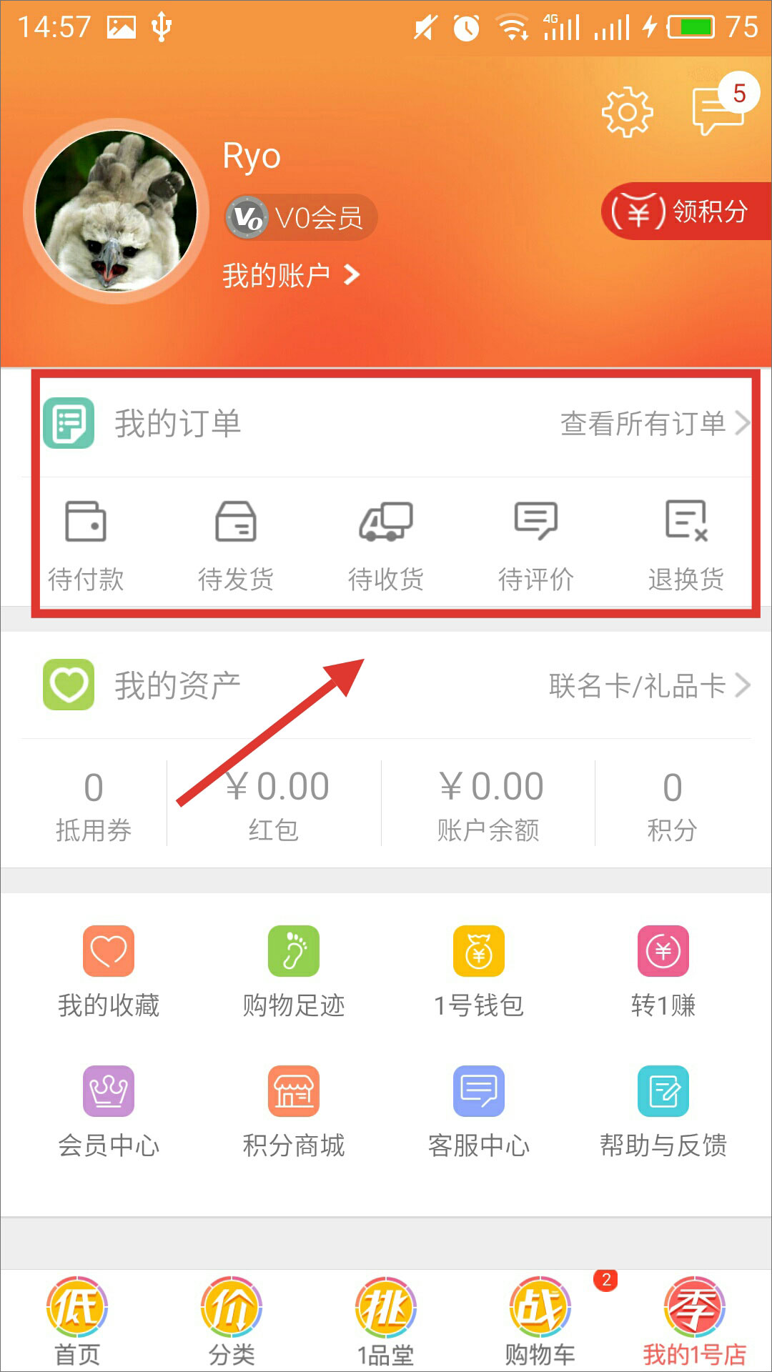1、打开“1号店”手机客户端,搜索想要购买的商品;