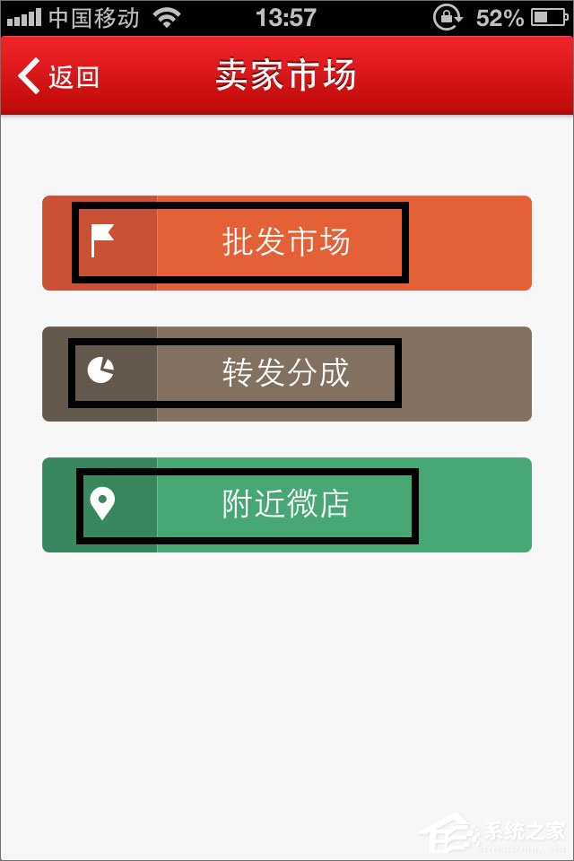 4、如果你没有货物来源,可以在主页面第二页卖家市场里找到批发市场。或者你可以用转发分成来推广盈利。甚至没事逛逛附近的微店。在促销管理中是微店商品的促销活动管理,我要推广就是把自己店里的商品推广出去。