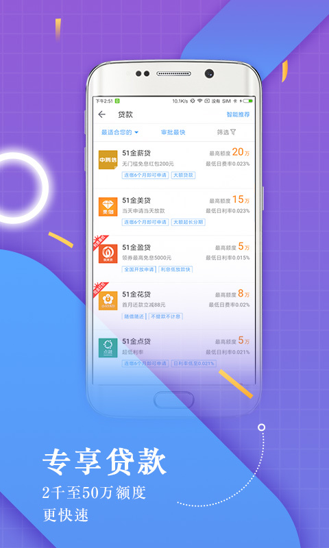 2、51金优贷:0-5万,快至3分钟审核,一次性授信,多次提款;