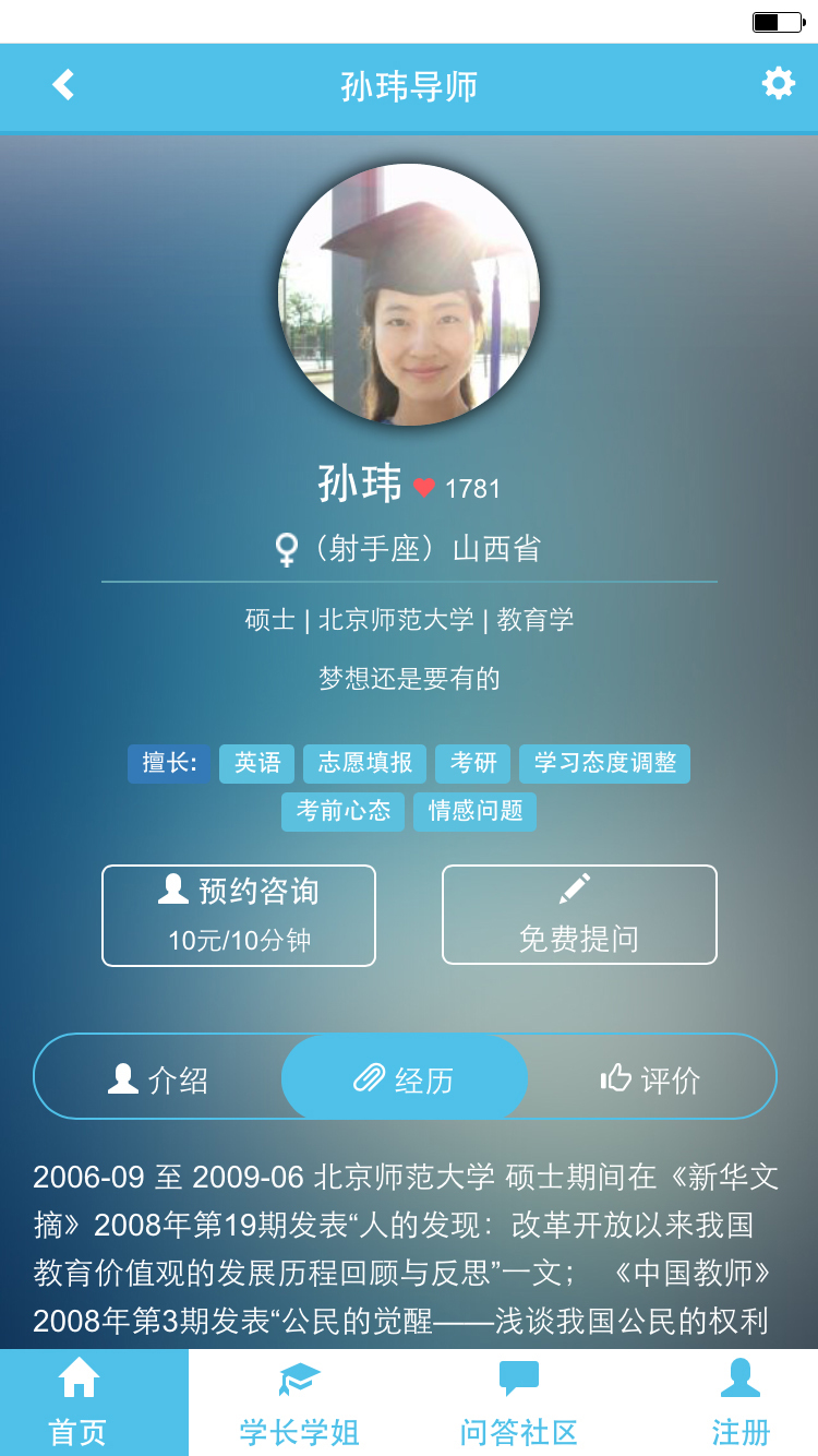 3.私信功能:选择看对眼的学长学姐,更精准的沟通,更贴心的服务,更快解决问题。