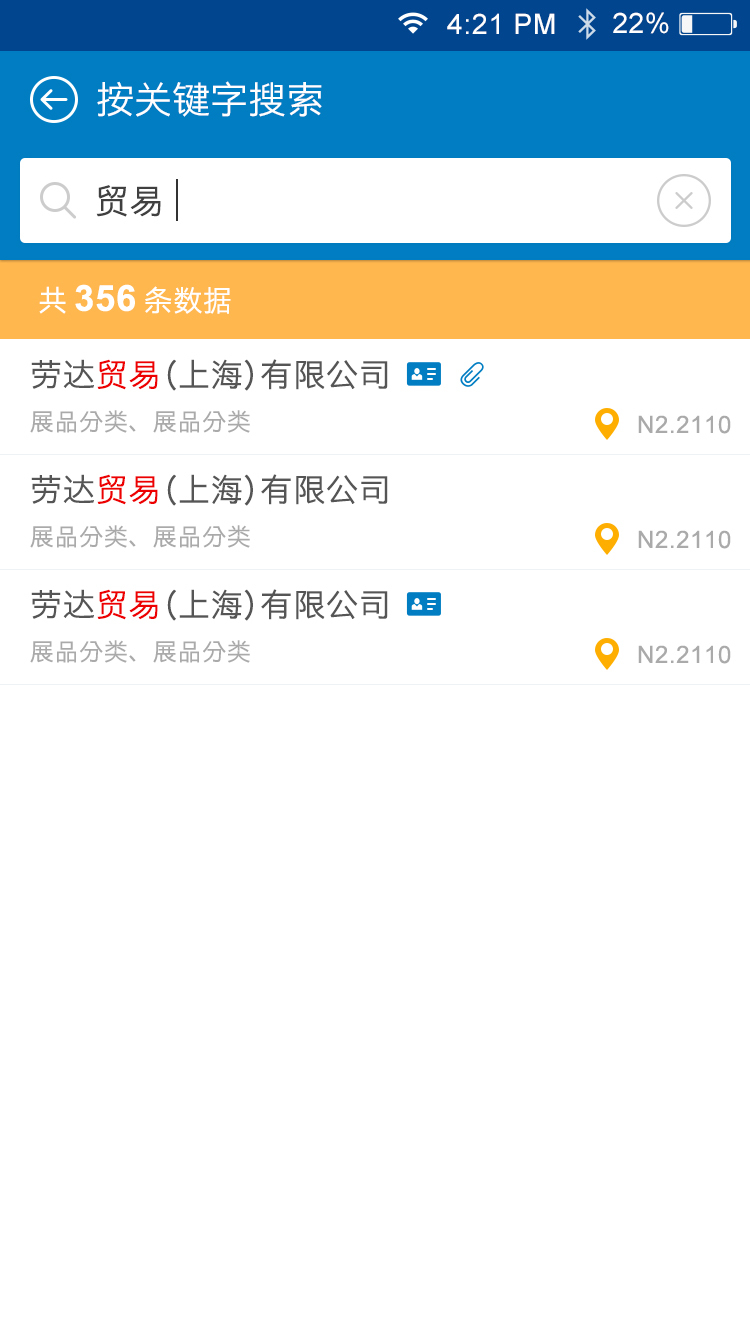 展会现场通过扫描胸卡二维码、名片盒二维码或随时随地按条件查询,展商和观众间即可快速交换电子名片,并可快速保存至手机通讯录、下载至邮箱。无限商机,不容错过。