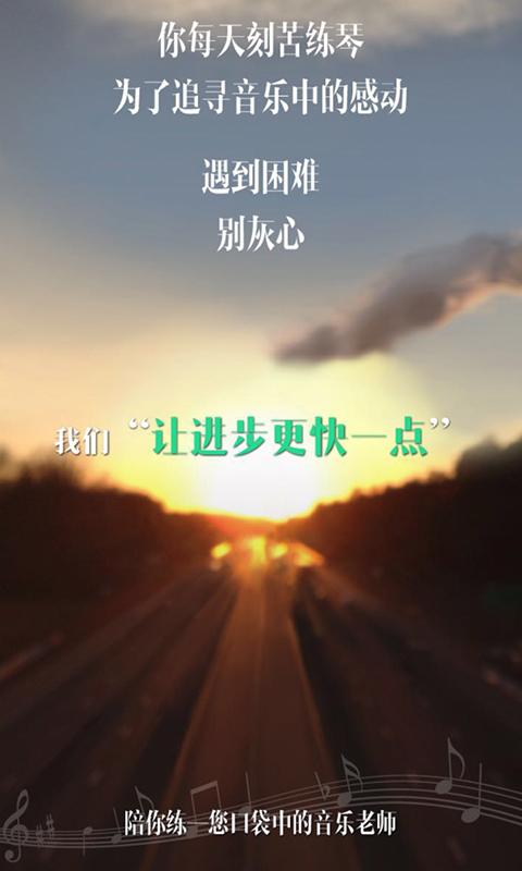 陪你练APP是一款练琴辅助软件,辅助老师课后更好的监督学生练琴,把学生平时练习的错音和节奏,一些基本错误,通过陪你练软件进行纠正,并且反馈给学生,让每周一次的课程更加有效率,可以直接上课讲处理,讲手指触感,而不是纠结在错音和节奏上,每天帮你进步“多”一点,每个学习音乐的孩子必备的APP。