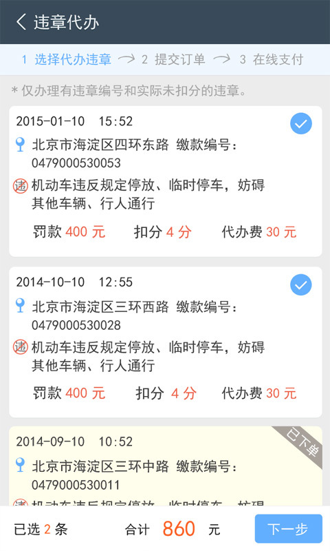 2. 违章记录:详细展示违章时间、地点、罚款、扣分、处理状态。