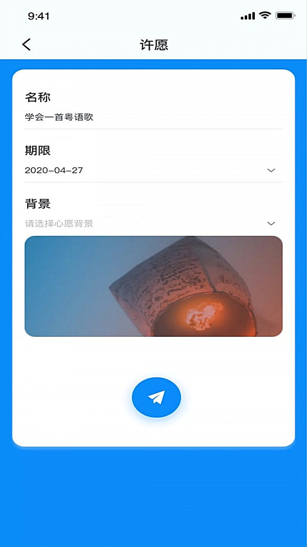 3、在许愿页面,就能自行添加自己的目标计划信息;