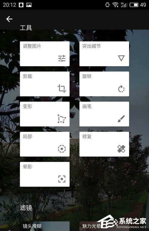 4、主菜单里,主要分为工具和滤镜两大类。可以一个个试用,多个滤镜配合使用也是没问题的