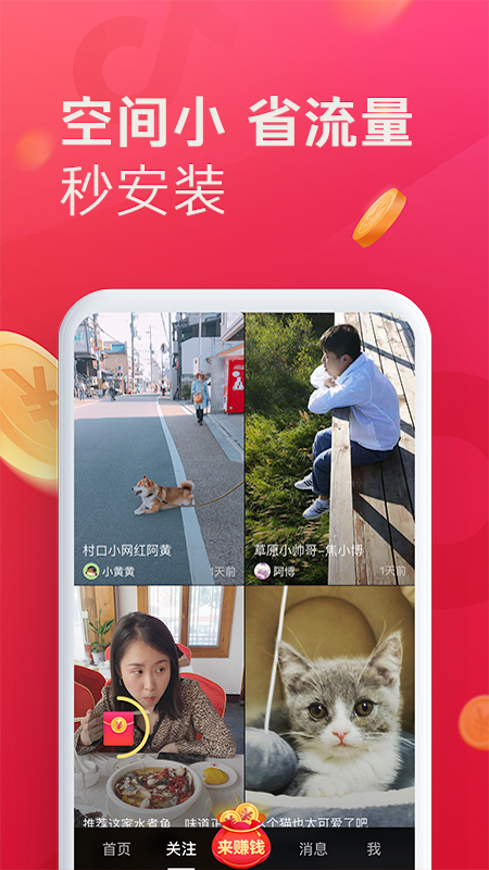 抖音极速版app是一款体积非常精致的短视频观看以及制作平台。抖音极速版与抖音正版相比体积小了很多但是功能上却不少。第一次登陆抖音极速版的用户还可以获得金币奖励!