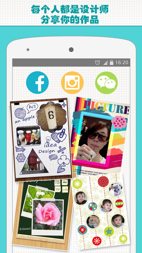 分享:创作后,立刻分享你的照片特辑吧!支持Instergram,Facebook,Twitter,G+ LINE,朋友圈等等。