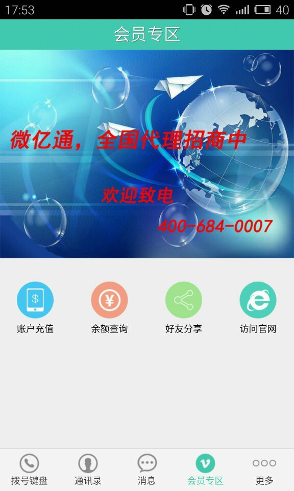 微亿通是一款安装在智能手机上的节费软件,为用户提供价格更低、音质更好的通话体验不懈努力,基于VOIP技术,集成了SIP网络技术节费省钱的优势及固话网络通信质量高的优势,是目前市场上最好的手机网络电话,操作简单,使用便捷,非常好用。
