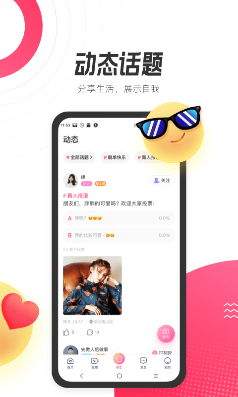 3、动态:嘉宾动态即时可见,他/她的心情随时能看见,嘘寒问短情感关怀一点都不能少;
