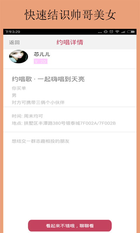 3、闲暇时间不知干什么,一个人又太无聊,用月下找人打发时间(闲聊,网游、看演唱会等);
