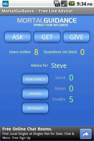 MortalGuidance咨询安卓版可以询问有关任何主题的意见,并立即从网上得到其他用户的生活意见!给来自世界各地的用户提供意见MortalGuidance.com功能的官方客户端要求咨询,获得建议,提供咨询,阅读的建议,咨询率,悄悄话和离线咨询收到的通知 。