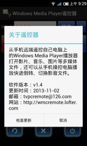 Windows Media Player遥控器可通过手机遥控电脑里Windows Media Player播放电脑中的视频,音乐,图片文件,操控电脑播放快进、倒转、切换影音文件,放片时再也不用跑到电脑显示器或电视机屏幕前用鼠标去选片或控制播放了。