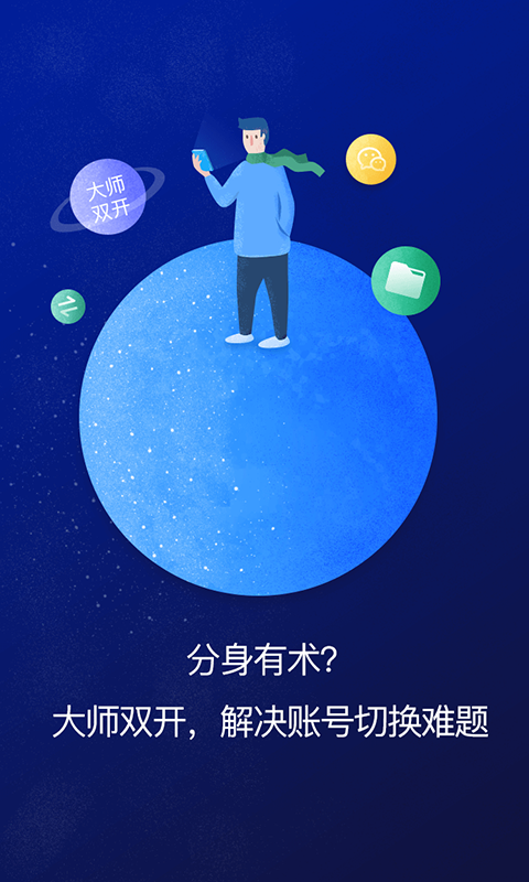 大师双开是一款可以在手机上双开应用,同时登陆不同账号的工具应用。