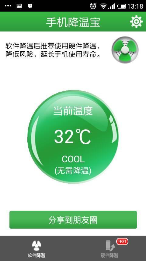 造成手机温度过高的原因有很多种,其中最主要的是软件功耗及硬件功耗,手机降温宝针对造成手机高温的这两个原因,量身定制了“软件降温”和“硬件降温”功能,能够使您的手机温度稳定在合理区间,延长手机使用寿命,提升手机性能。