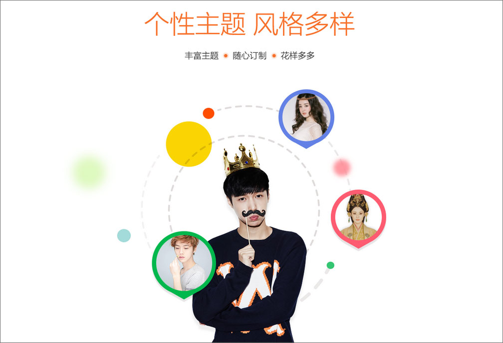 1、【主题随心换】更丰富的主题内容、更豪华的明星阵容,还可自定义上传,我的皮肤我做主!张扬个性,风格多样!