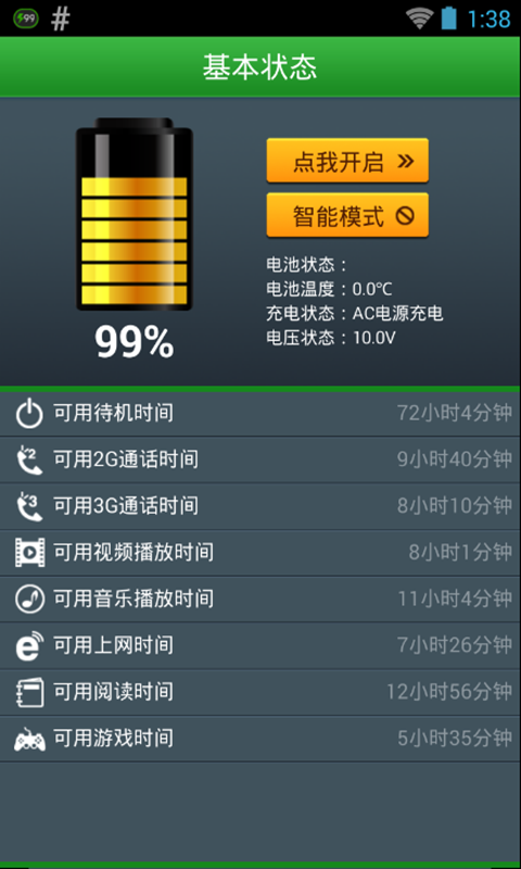 一键省电大师是一款专门为Android手机、平板省电的超强电量管理软件,你不需要知道什么东西费电,只需要打开1-3档的省电模式,软件会自动为你开启想要的省电强度,我们直接减少手机硬件上的电力供应,这是任何其它同类软件所做不到的,所以也只有省电王才能真正做到有效省电。软件操作非常简单,但不用怀疑软件是否有效,请保持正常使用2天,才能知道省电王是真正能为你节约电量的软件,有空的话,可以设置你的睡眠时间,以便更好地节省电力。