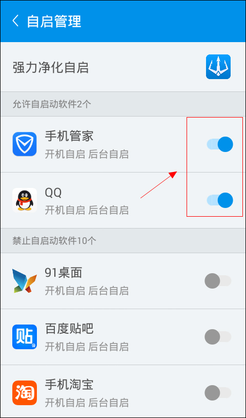 2、快捷方便 管理开机启动项,向霸占手机内存、频繁推送广告的应用说NO;