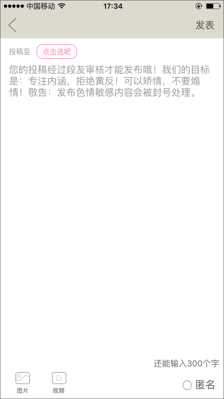 5、如果自己也有想分享给大家的内涵段子,也可以点击右上角的画笔按钮进行内容创作。