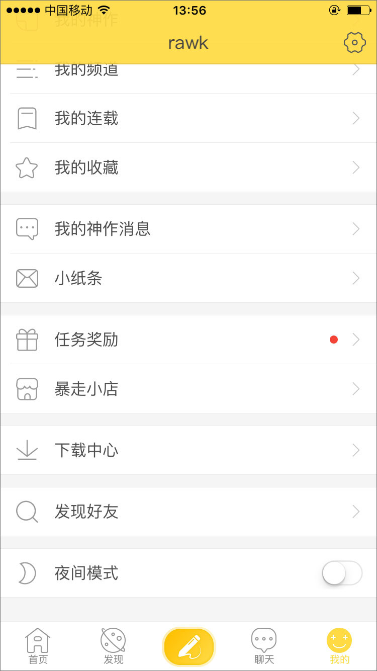 2、点击【主页】右上方的“+”按钮,用户可以将自己写的内涵段子、做的搞笑图投稿至暴漫,让更多的漫友们看到;