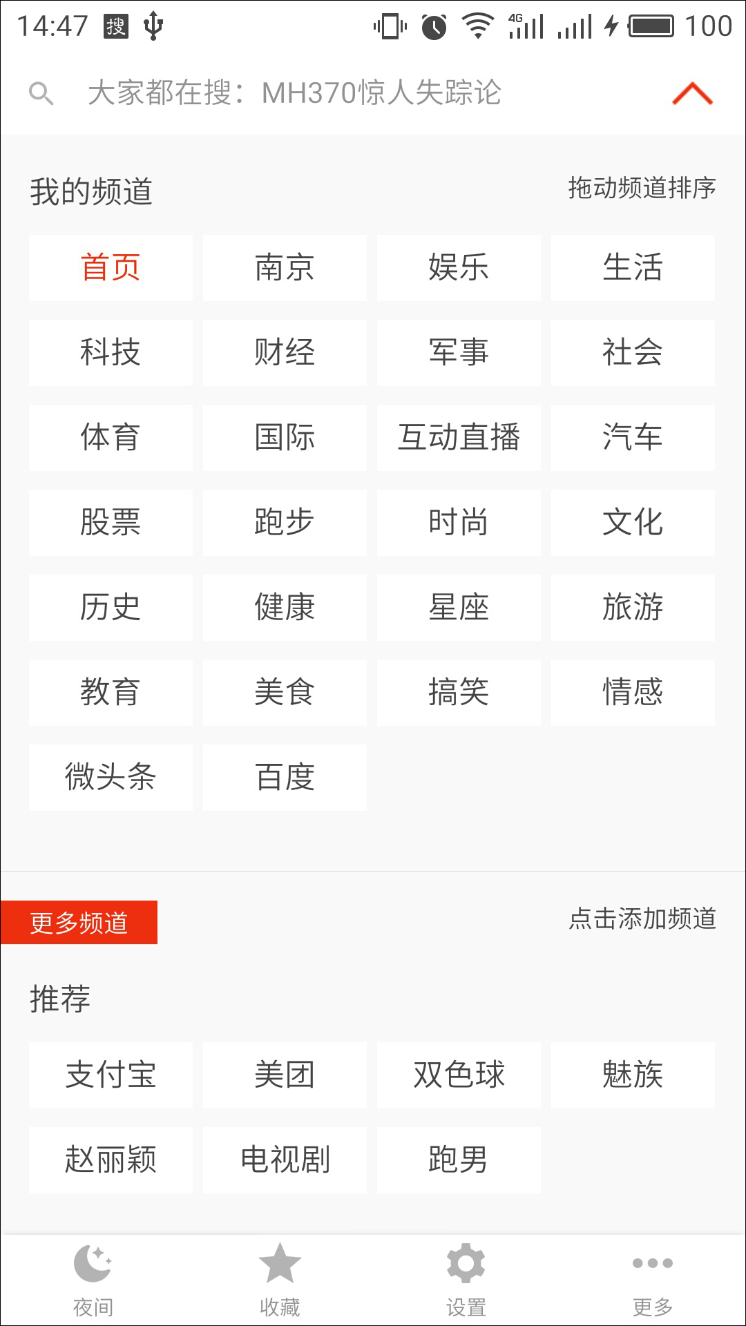 2、可以拖动频道进行排序,以及点击添加新的新闻频道;