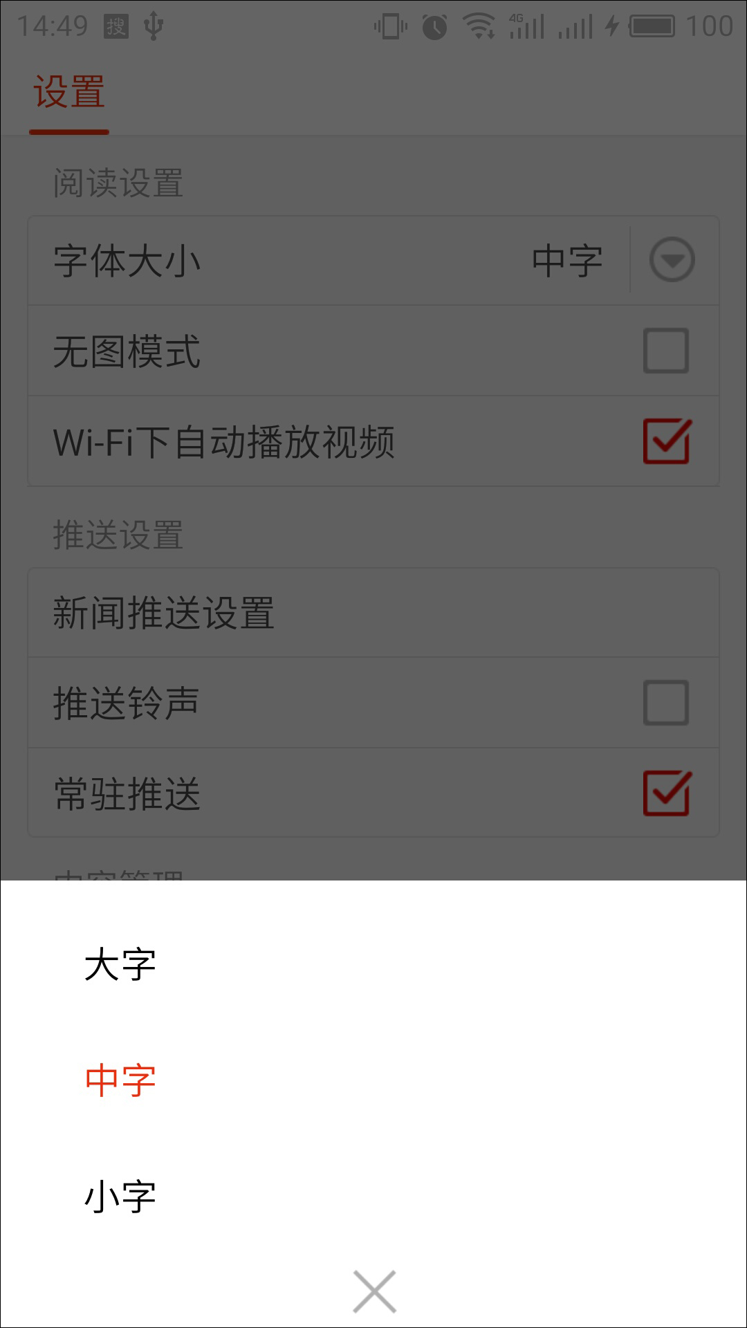 3、在【我】-【设置】-【阅读设置】中,还可以根据用户自身的需求调节字体的大小。