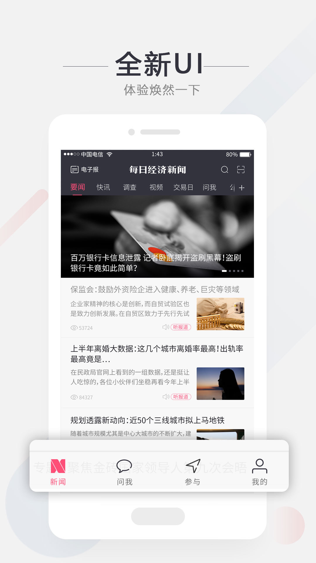 在每日经济新闻客户端可以通过文字、视频、图集、专题、直播和数据新闻等多种方式,全方位了解经济、股票新闻、经济金融、财经资讯,经济新闻,热点新闻,等领域的资讯和评论,更可以把喜欢的内容分享到朋友圈、QQ空间、微博等社交平台,使资讯的价值得到有效传递。每日经济新闻,你的投资、理财、资讯客户端。