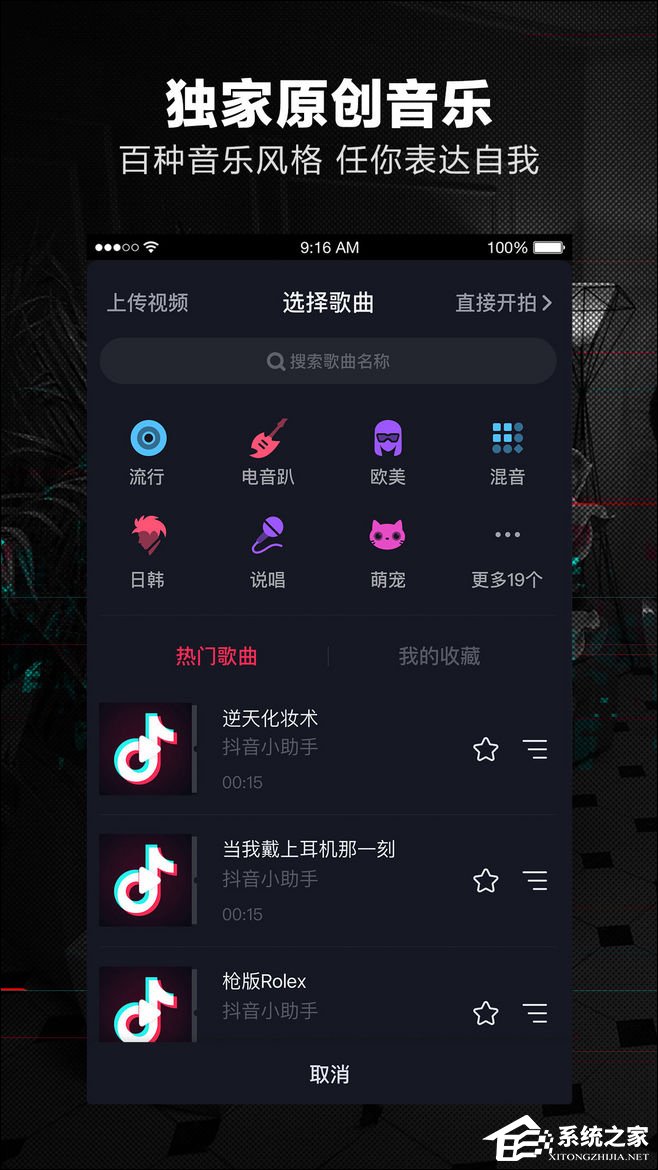 抖音短视频软件内置自己的音乐库,用户可以随意选择音乐作BGM,制作15秒个人MV。支持自选音乐,快拍、慢拍、滤镜、贴纸、特效,并可以将视频分享到微信好友、朋友圈、微博、QQ空间。