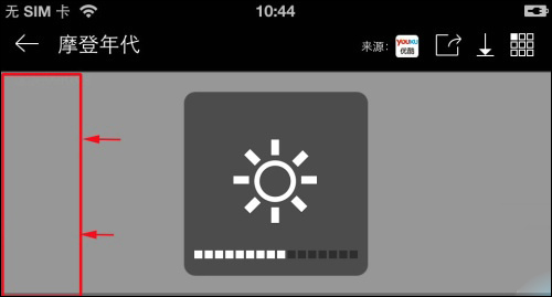 3、然后在视频播放界面上,最左边的区域是调节亮度的,最右边的区域是调节音量大小的,操作都是一样,用手指向上滑动调节是增加亮度或者是提高声音音量,手指向下滑动是降低亮度或者是降低声音音量,非常的方便实用。