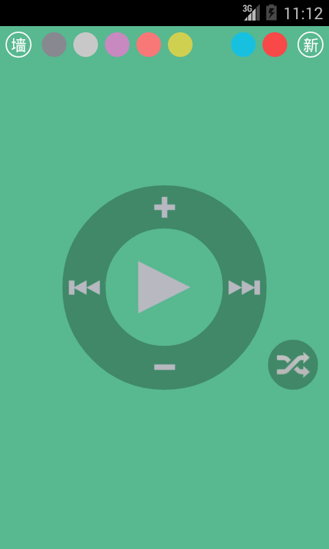 随意听Shuffle是一个简洁的音乐播放器,只要手机中有音乐文件,打开此应用就可以开始听音乐,但播放音乐时不会显示音乐的任何信息。 当手机中的音乐文件发生变化时,点击右上角的“新”按钮,让随意听Shuffle更新乐库。