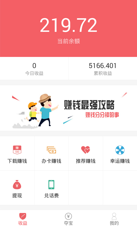 4、幸运赚钱 进入软件点击幸运赚钱,让赚到的钱再次实现增值的机会。