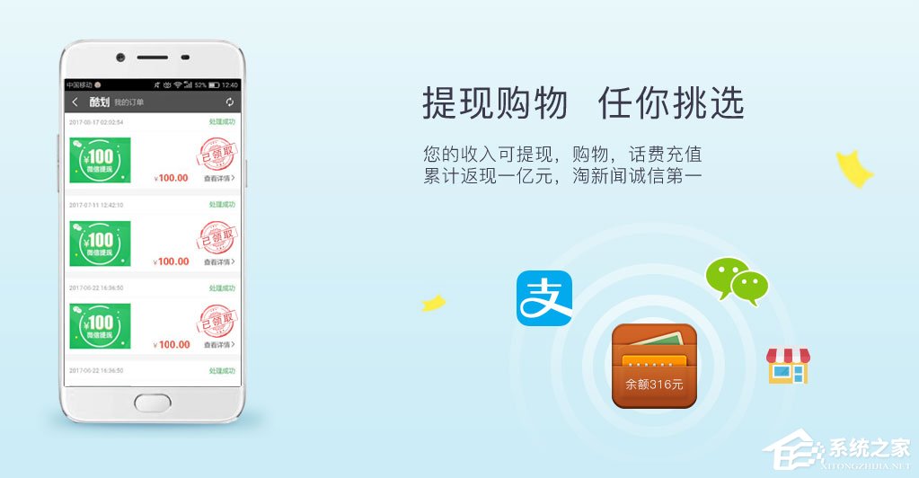 您的收入可提现,购物,话费充值