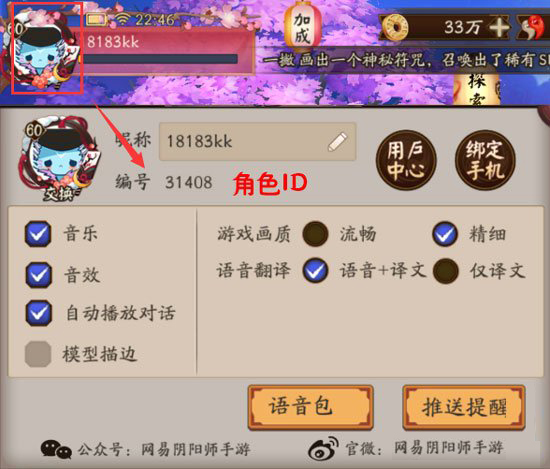 2、在对应的编号就是自己的角色ID。如图,31408就是小k的游戏ID了。