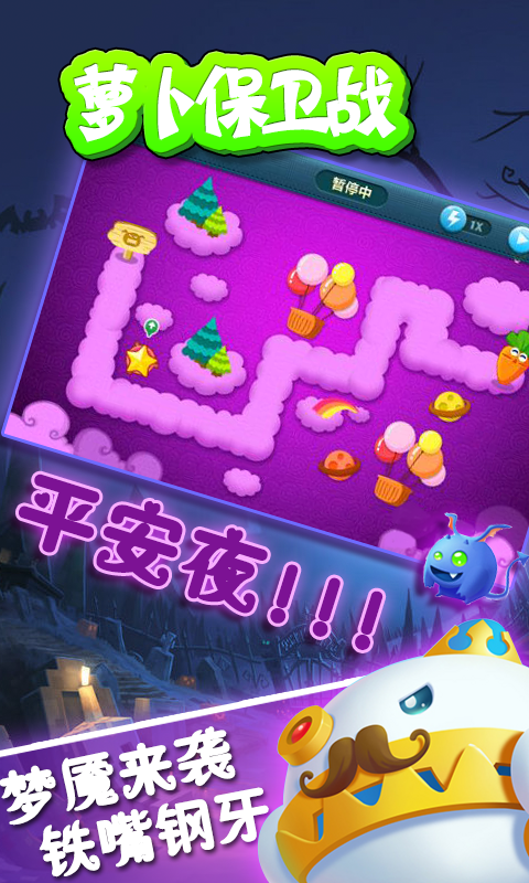 《萝卜保卫战3》是一款策略塔防游戏,纵穿天际、丛林、沙漠等多个冒险主题场景,加之挑战级的BOSS模式,通过建造防御塔来保卫一个可爱的萝卜,美轮美奂的游戏画面,痛快淋漓的战斗画面,容易上手游戏操作、老少皆宜,会带给你无法割舍的小快乐!