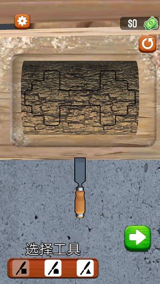 1、旋转木雕中玩家需要先将木头打磨干净,把多余的部分去除掉。