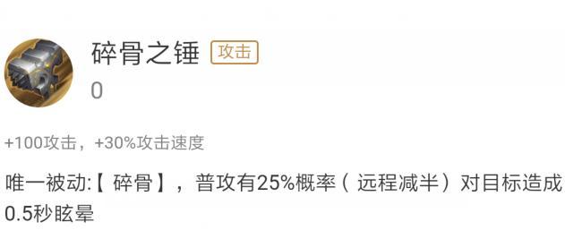 碎骨之锤:普攻附带晕眩,适合近战攻速型英雄,比如:老夫子、典韦、韩信等;