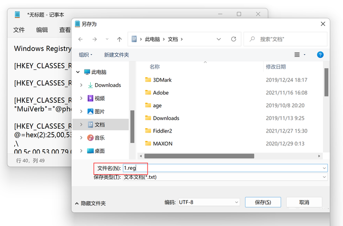 接着,点击“文件”-“另存为”,将其另存为后缀名为“.reg”的注册表文件。
