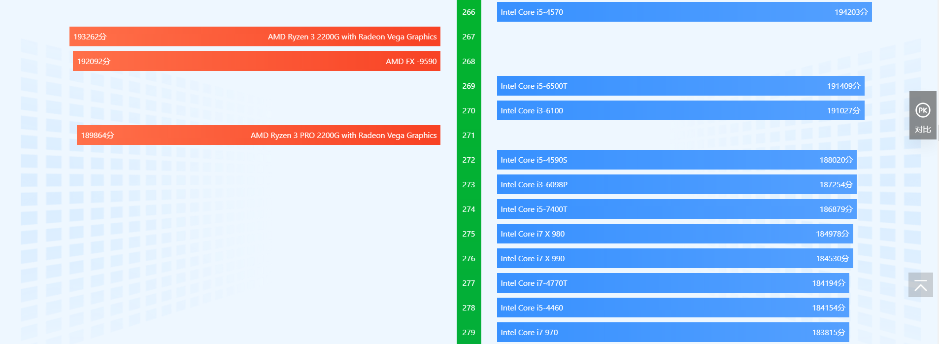 鲁大师CPU天梯图前5名:
