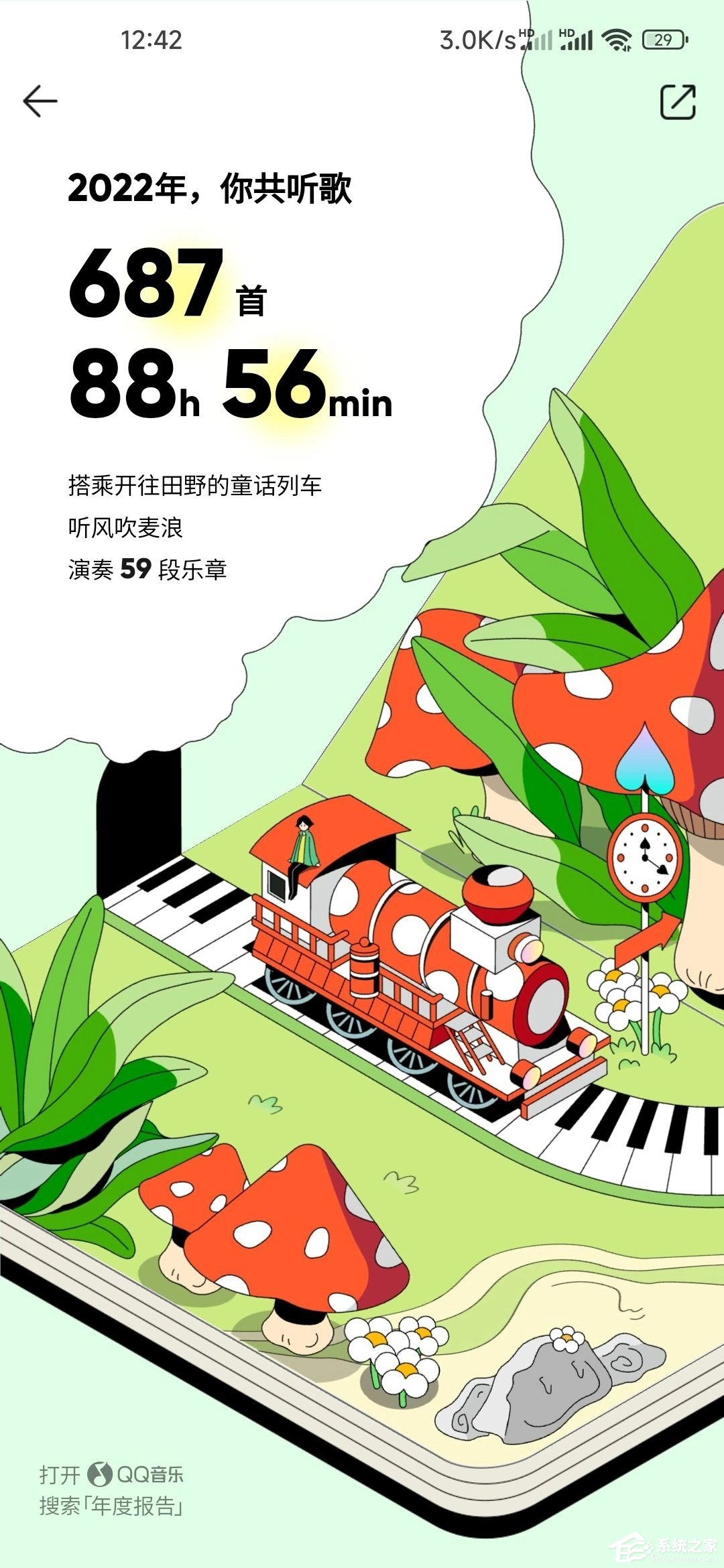 系统之家12月13日最新消息,继QQ年度社交报告发布之后,QQ音乐2022年度听歌报告也出炉,该报告能够帮助用户轻松的查看年度音乐记忆和听歌记录,还会看到收听最多的歌手,下面就和小编一起来看看吧。