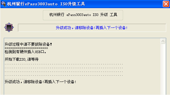 2、 关闭IE,双击运行程序,软件名称“杭州银行key软件升级工具”,弹出页面如下: