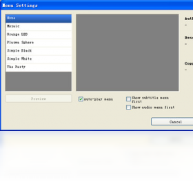 支持将视频文件制成在DVD上播放的光盘。如果你有一些视频文件,想把它们制作成一张可以在DVD机上播放的光盘,可以试一试DVD Flick,DVD Flick免费开源,使用ffmpeg作为引擎,支持的主要文件包括:AVI、MPG、MOV、WMV、ASF、FLV、MP4等,支持的主要编码包括:MPEG-1\2\4(XVid,DivX等)、Windows Media视频音频、MP3、OGG Vorbis、H264等。